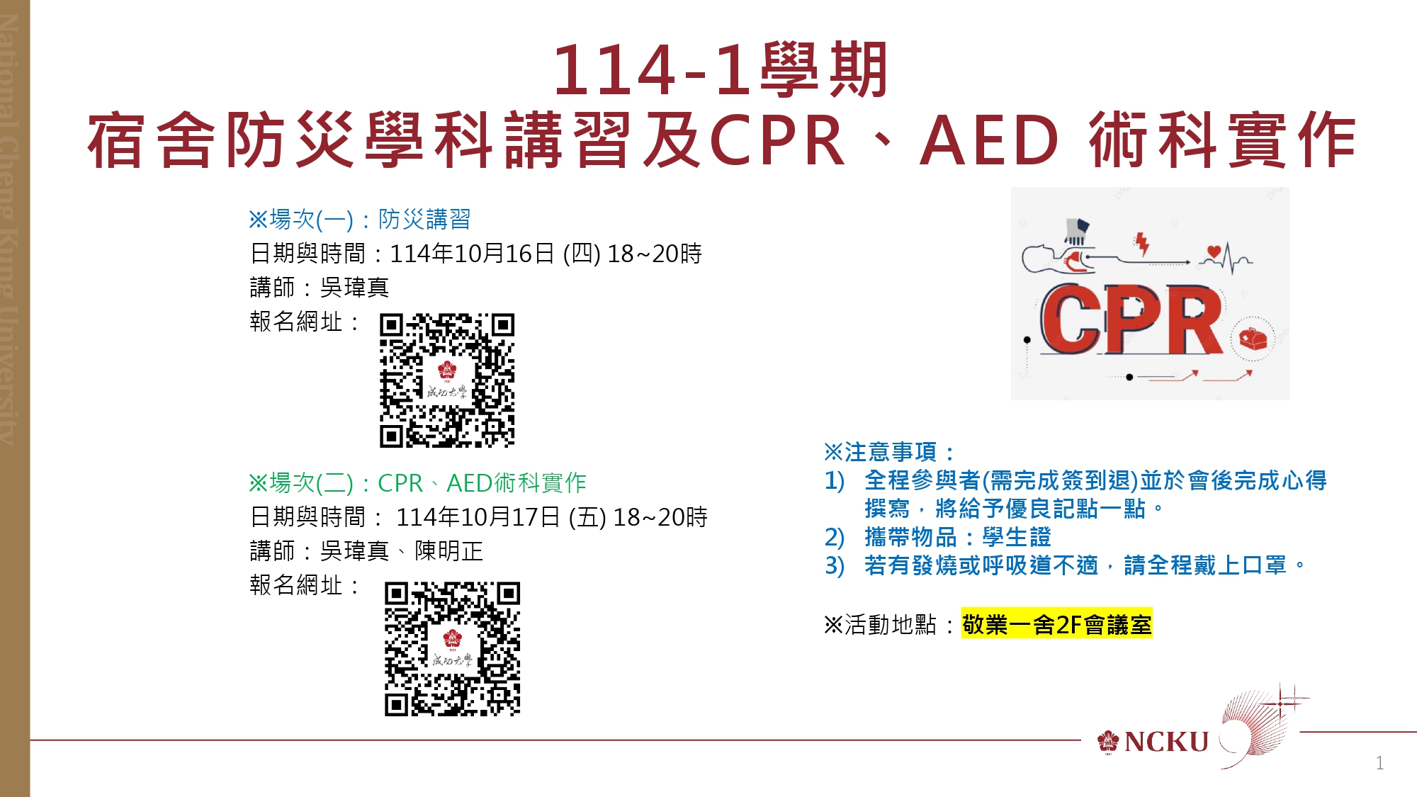 <![CDATA[【轉知】高雄市茂林區公所辦理「2025 Teldreka132線觀光音樂節活動招募志工」]]> 2025-10-07 00:00:00 <![CDATA[[心輔組活動] 沒有失敗的旅程-在路上遇見勇敢的自己]]> 2025-10-03 00:00:00 <![CDATA[114-1學期 宿舍防災學科講習及CPR、 AED 術科實作 (114/10/16,17))]]>